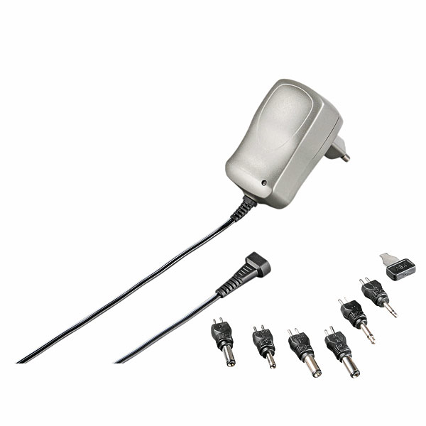 Potencia: 600 mA Tensiones de salida: 3,0/ 4,5/ 5,0/ 6,0/ 7,5/ 9,0/ 12 V Incluye 7 adaptadores universales Apto para todo el mundo: 100-240V Polaridad reversible